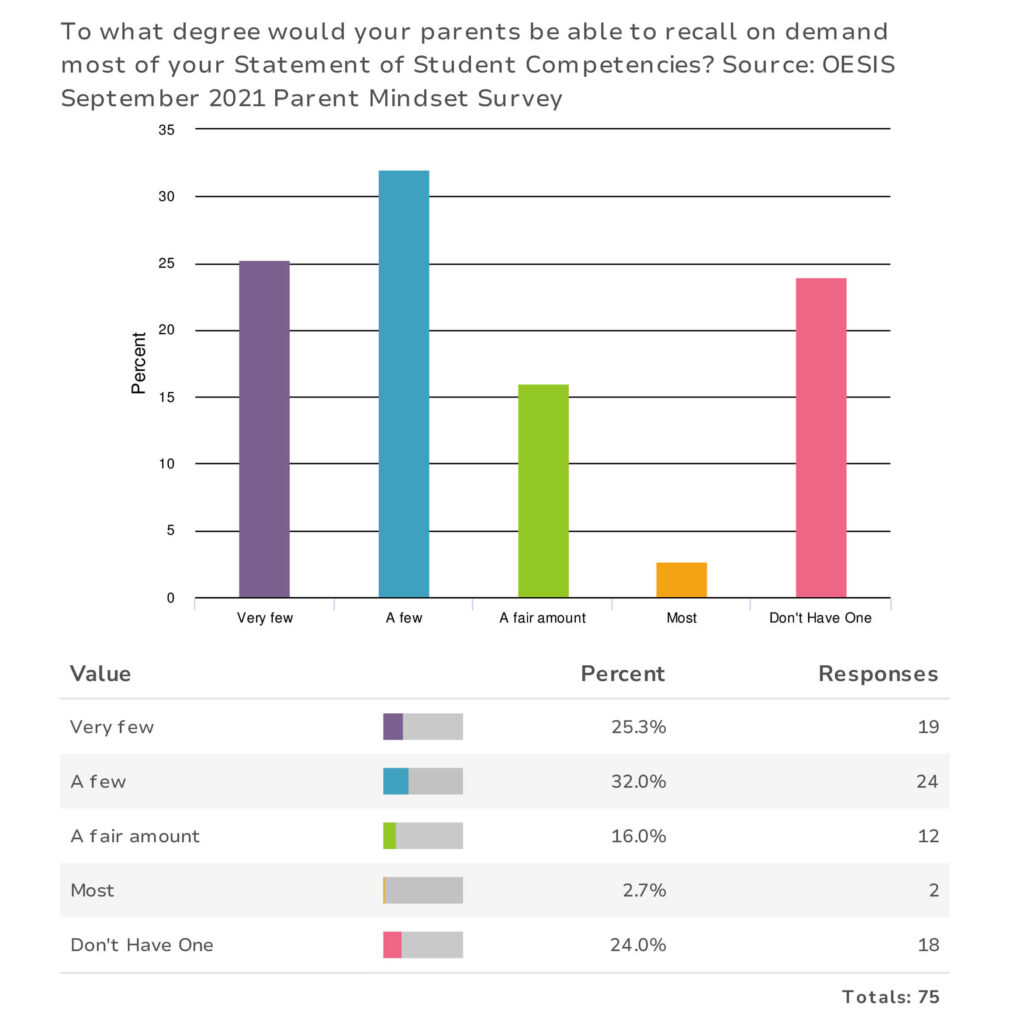 The core of the problem with association governance is that they are not helping schools create strong mission statements that will stretch the community and connect to measurable outcomes. In the OESIS Parent Mindset and Education Survey of 75 schools, only 2.7% said that most of their parents had strong familiarity with student competency statements.
